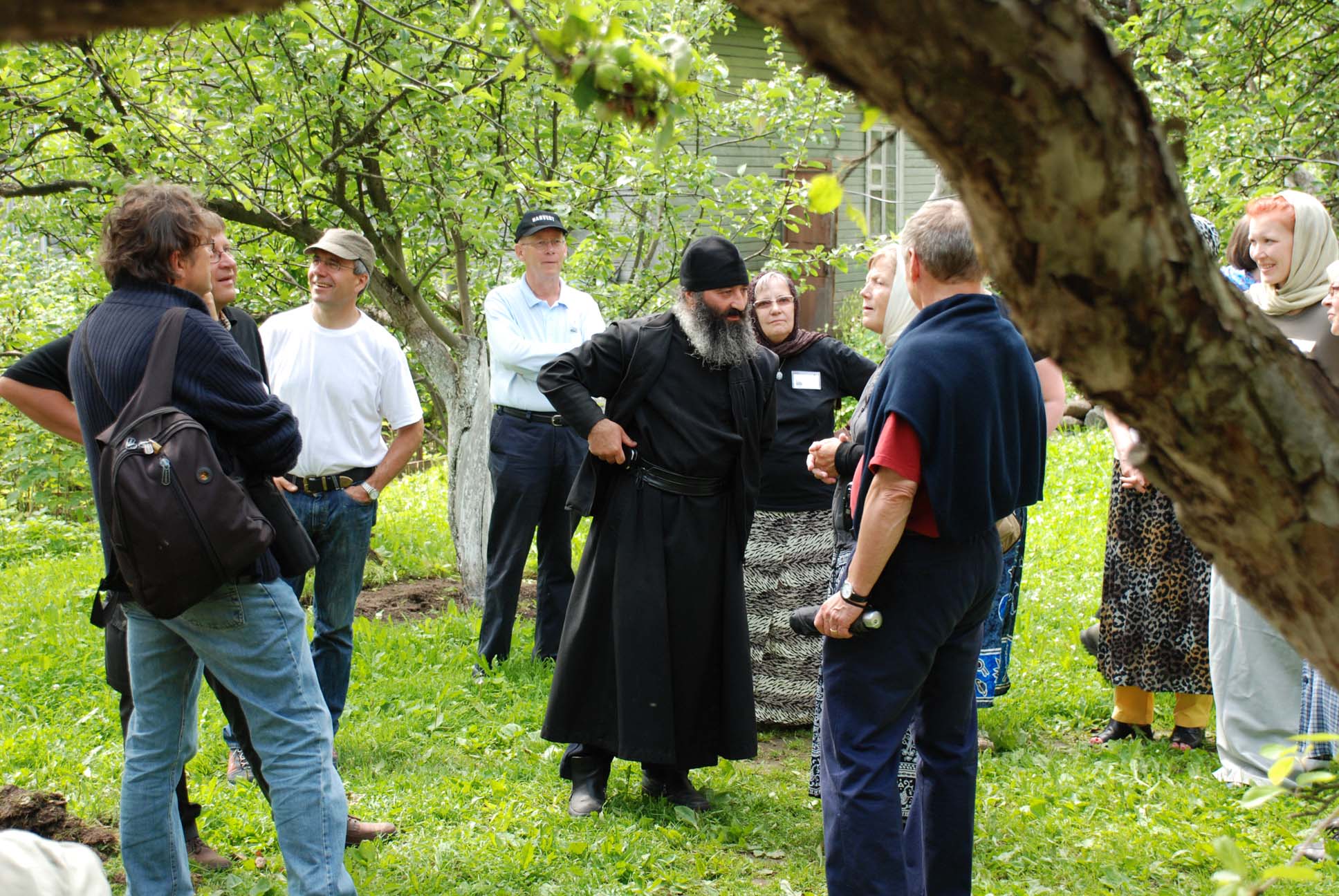Puutarhurimunkki pitää esitelmän luostarin puutarhan nykyisestä toiminnasta.